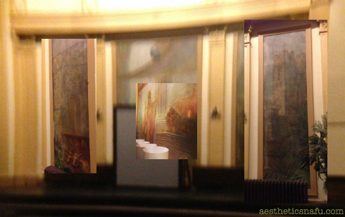 As for the Mason’s Hall. Below is one of the blackened murals lightened up as much as my scanty Photoshop skills would allow.
