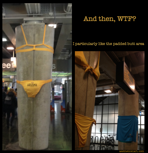 And then a particularly big advertising fail. I’m not sure what’s better: that the padded butt in the bikini makes it look like a speedo or how the swim trunks look more like the ugliest curtain ever.